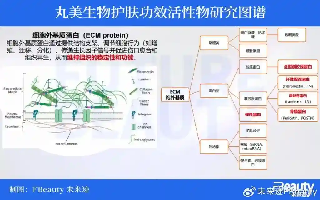 据《FBeauty未来迹》了解,丸美生物对护肤功效活性物的研究已经开始拓展到所有主要细胞外基质蛋白(ECMprotein)。除了包括目前市面上大热的透明质酸、胶原蛋白、多肽等活性成分之外,还包括刚获得诺贝尔奖的小分子核糖核酸(miRNA)。