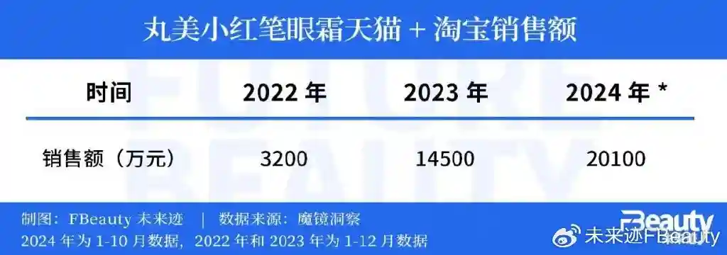 魔镜洞察数据显示:2024年1-10月,主打“多肽”的丸美小红笔眼霜在天猫和淘宝的销售已经超过2亿元,在抖音的销售额超过1.6亿元,成为化妆品行业的现象级大单品。而丸美品牌2024年1-10月在天猫和淘宝的销售额同比增长高达50.9%,在抖音的增长高达40%。其增速几乎是市场大盘的10倍以上。