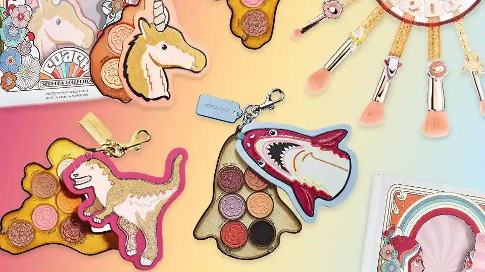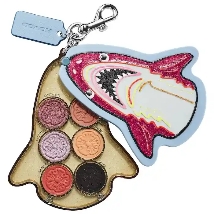 此次联名融入了Coach非官方吉祥物Rexy、Sharky和Uni的造型进行设计。首批上市七种产品,包括眼影、唇彩、指甲油、眼罩、调色板和化妆刷,售价在16美元到68美元不等。