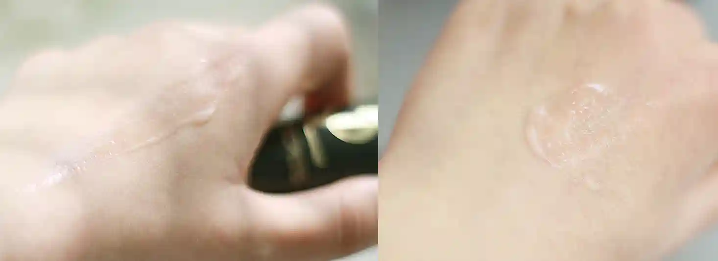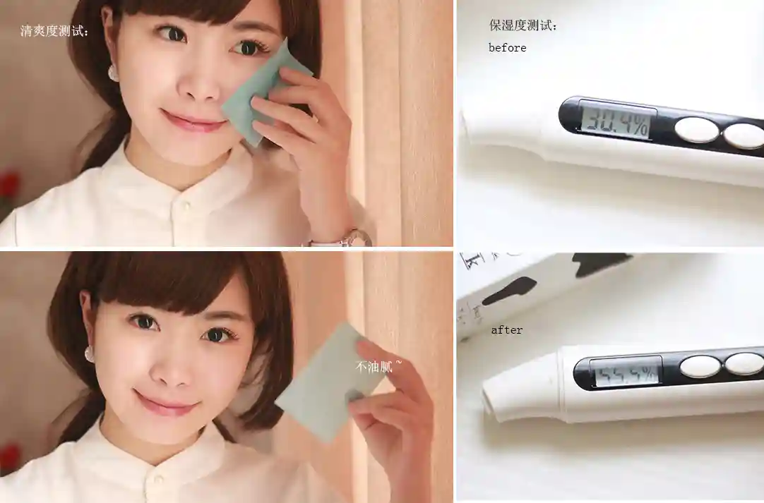 几乎就是数秒中就已经吸收完全,超级轻薄,同时微微的散发柔和的光泽,状态好极了。