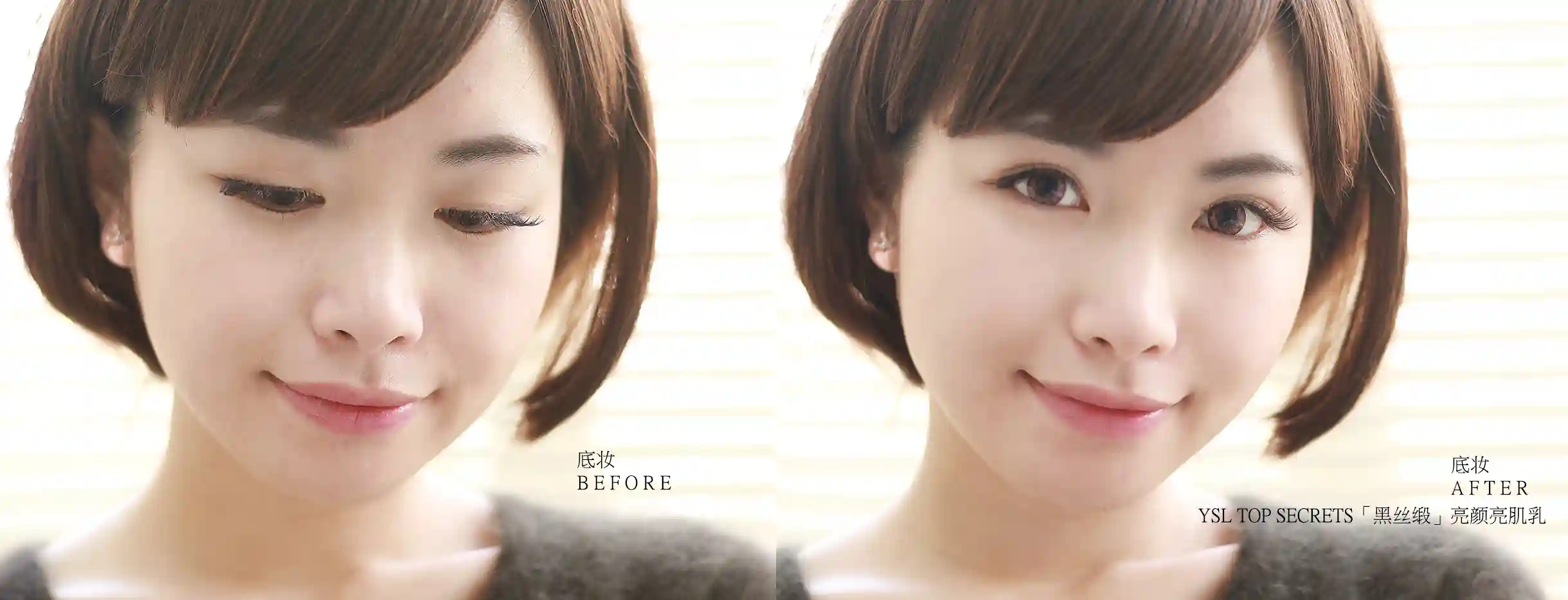 就是简单的妆前一小步,对比底妆叠加YSL圣罗兰「黑丝缎」亮颜亮肌乳后的妆面情况(亲耐们点开看肌肤),心机婊啊!!!