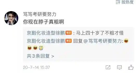 资料显示,徐鹏在14年曾在福建京剧院就职,并且还曾在高清数字电影《状元媒》当中担任化妆总监,据徐鹏2020年7月在微博与好友互动的时候透露,自己快要满40岁了。