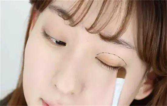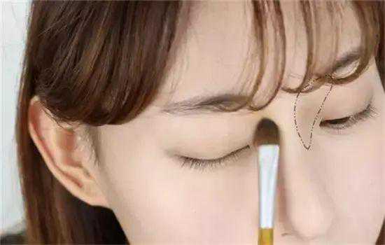 第二步:用中号的眼影刷沾取棕色眼影在上眼睑处晕染。