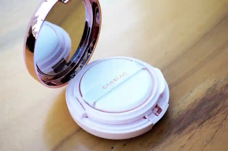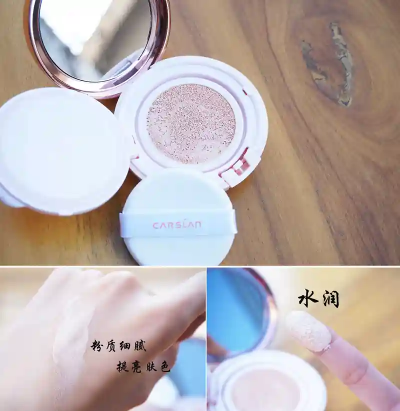 粉嫩色系的外观包装非常具有时尚感的流线型线条,拿起来非常有质感,满满的少女心爆棚啦!~打开盒子可以看到气垫霜中含有数百万个细小的储水微气孔,可以牢牢储存丰富的新鲜粉底液,使用的时候用指腹按压2-3下瞬间释放百万水力因子,保证足够水润的底妆服帖质感。