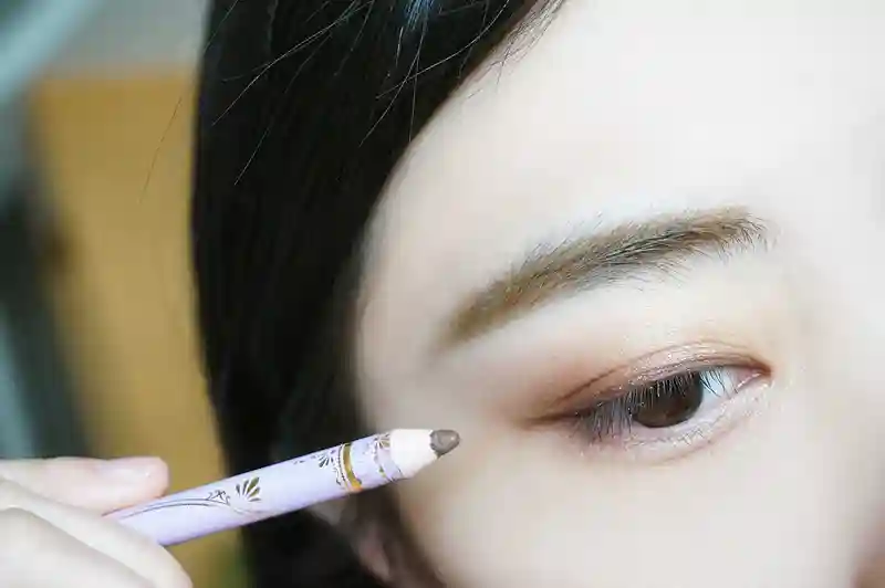 眼妆:首先用资生堂六角眉笔勾勒出眉毛的大致轮廓,顺着眉毛的走势梳理毛发。