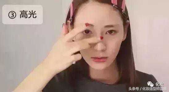 第六步:用另一头干净的海绵棒沾取最浅的香饼色涂抹眼头和卧蚕位置,突出“微笑肌”。
