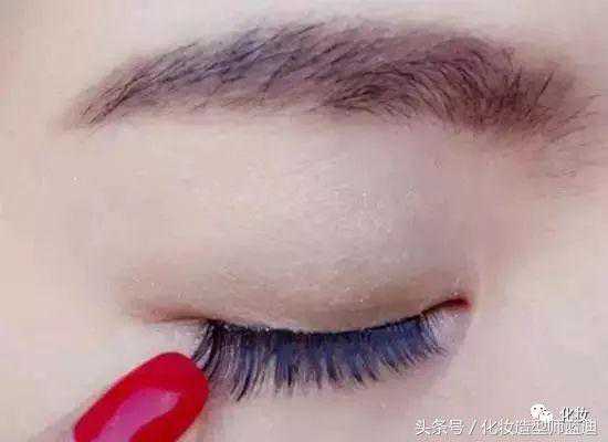 第九步:在下睫毛梗部涂抹少量假睫毛胶水。黏贴眼尾后2/3,位置比自身睫毛往下一些,可以制造大眼的效果。