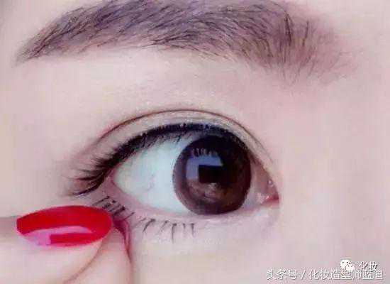 第八步:使用眼线液笔以点戳的方式填补睫毛根部,画出自然又有神的内眼线。