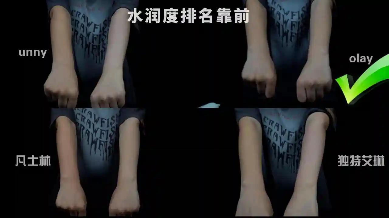 首先是水润度测试。水润度高的身体素颜霜容易推开,滋润且妆感自然均匀。经过测试,我们得出了8款身体素颜霜的水润度排名:干皮的女生可以选择排名靠前的nice、only和凡士林,因为它们的水润度更高,推开后不易卡纹,水感更强。