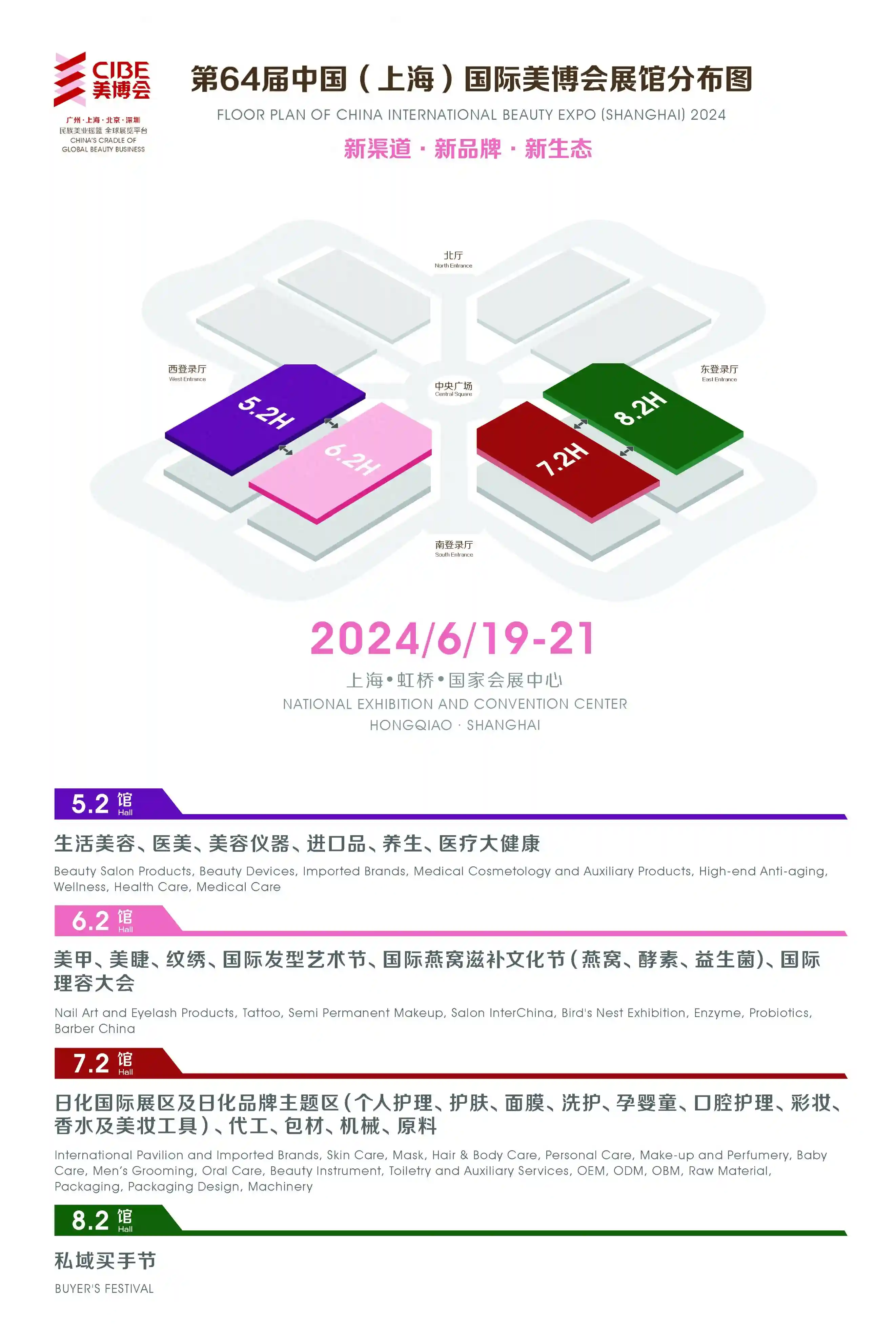 广州佳美展览有限公司荣幸地宣布,我们将于2024年6月19日至21日在上海举办第六十四届上海大虹桥美博会!本次展会将在上海国家会展中心(虹桥)盛大举行,展览面积达到10万+平方米,展商数量超过1000家,预计将有20万人次的观众莅临现场,共同探索化妆品及相关产业链的无限商机。