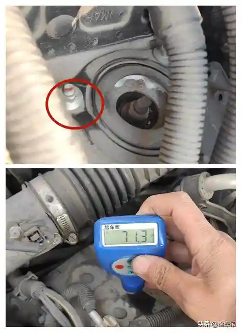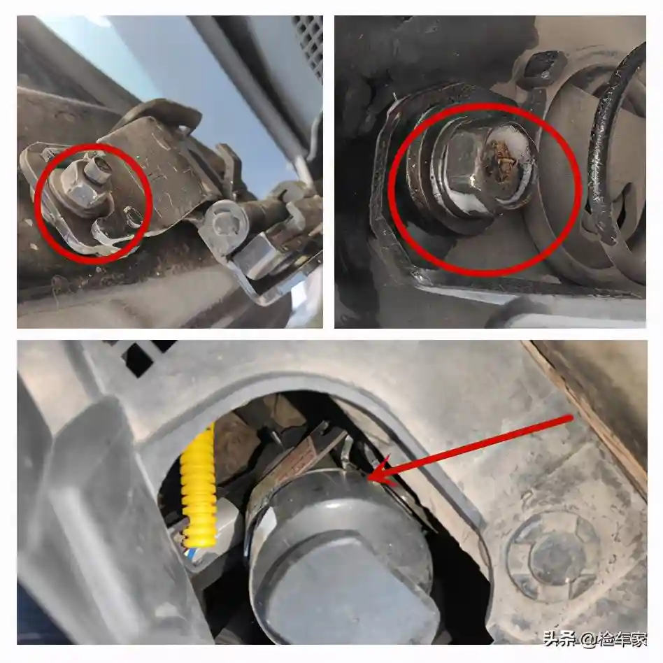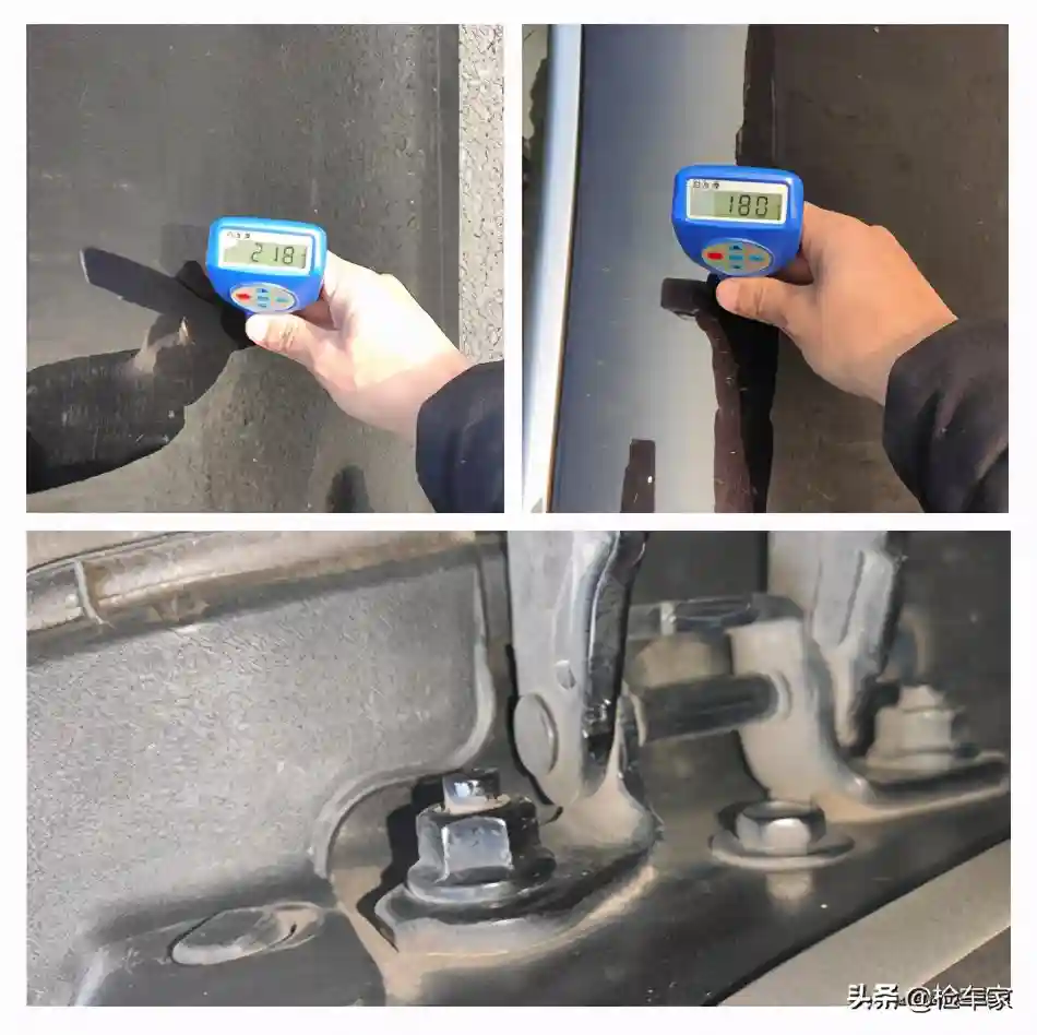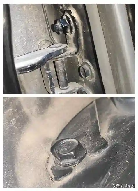 打开车门看到左前翼子板内侧固定螺丝有过一圈的拆卸痕迹,看来左前翼子板确实有过更换。那么前机盖呢?这就需要从发动机机舱再进一步查验,查看是否拆卸以及其他情况。