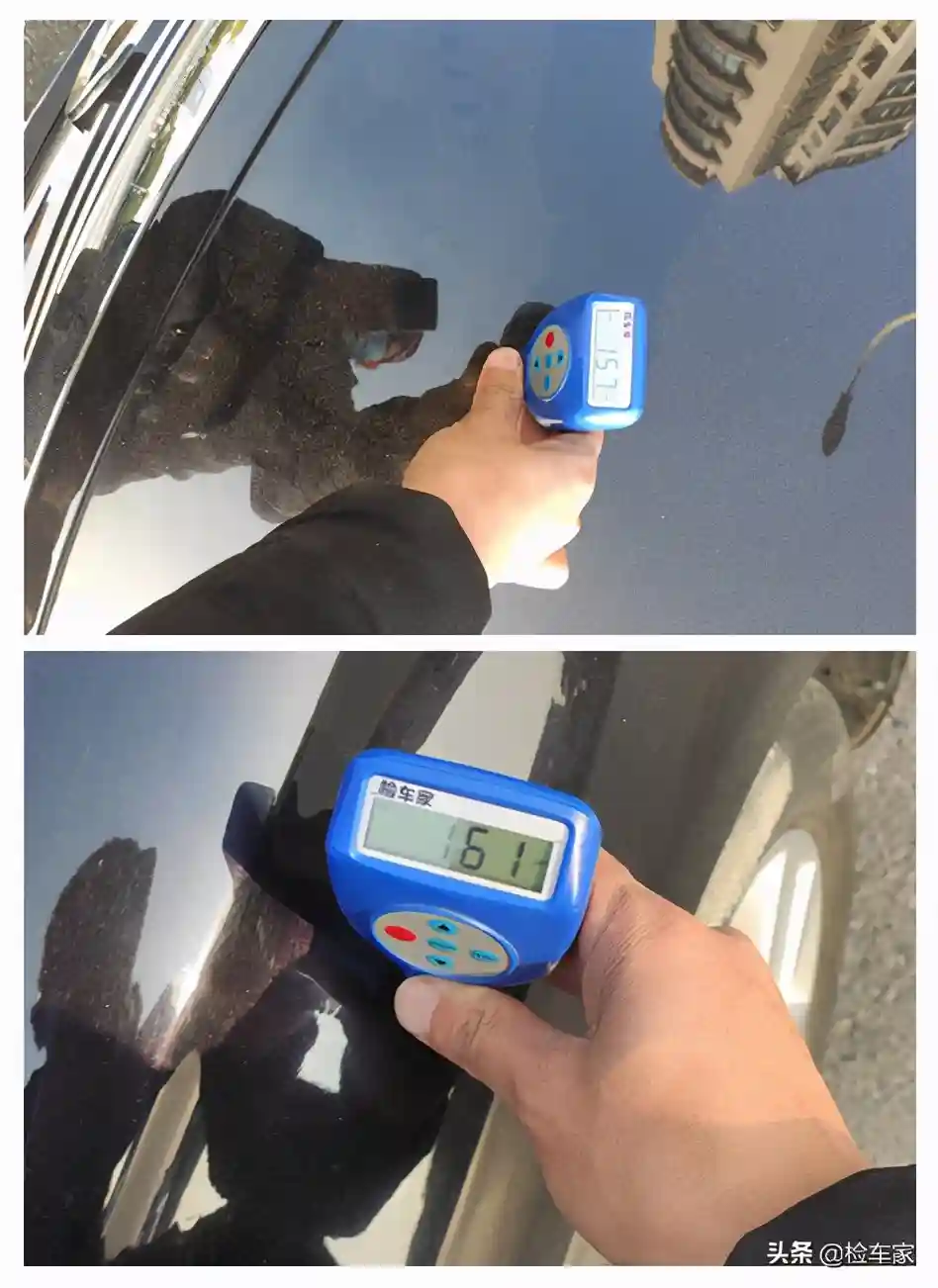 左前门喷漆,左后门漆面厚度虽然偏高,但是细节良好,并且只是局部偏高,漆面也无异常,车门螺丝也无拆卸痕迹,所以综合来讲问题不大。