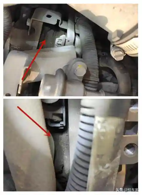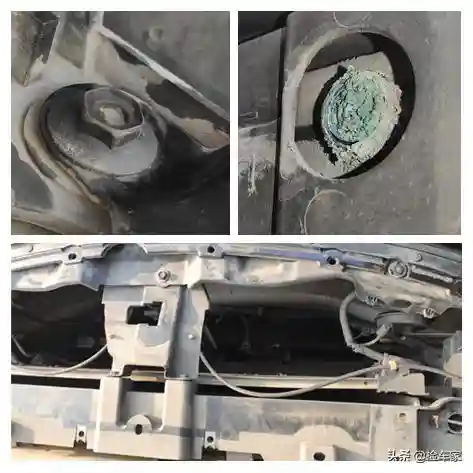 前部水箱有泄露防冻液的现象,后期也需要及时处理,要不高速行驶发现水温高了,水箱破了那就走远了。