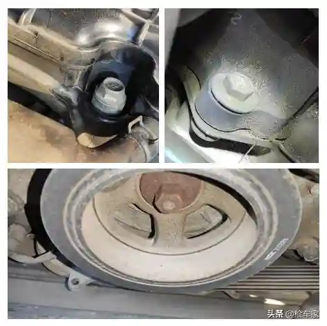 发动机变速器还是重点,发变结合处螺丝无拆卸无渗漏,发动机后部托架螺丝完好无拆卸,判断发动机变速器无吊装及分解维修。