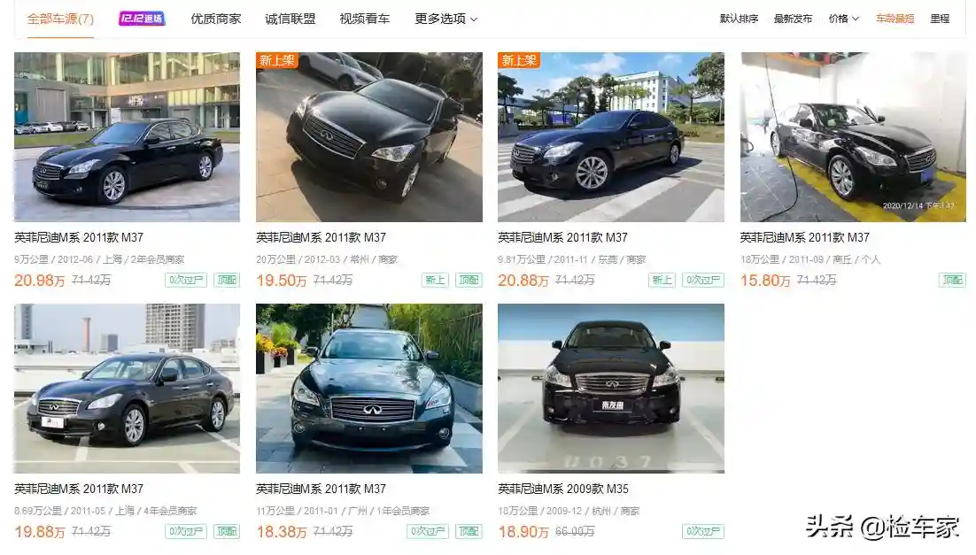 英菲尼迪M系列其实是Q70的前身,M37仅仅有2011款,当年定价65.80万,因为品牌小众销量不好,M37在国内可以说相当少见,大街上的出镜率还没有姚明一个脚指头高。二手车源也非常稀缺,在某汽车类网站上仅仅只有6台,均价在18万以上。这个残值其实还是比较高的,要知道同年份同价位的A6L都只剩10万左右了。