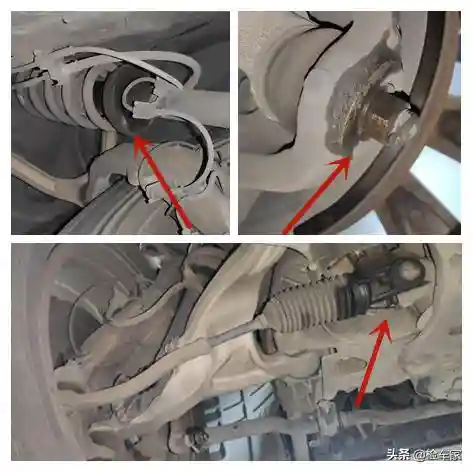 细看一圈四轮悬挂,右前减震渗油,前方向机两侧防尘套渗油,其余零部件还好,没有托底损坏,也没有拆卸维修的情况。整体感还是不错的,易损件渗漏也在情理之中,毕竟这个年份及公里数,不渗油就不科学了。
