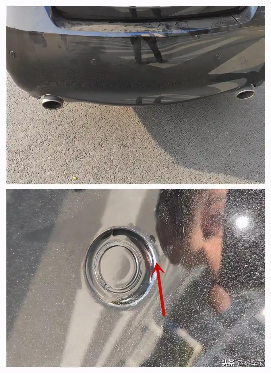 后保险杠喷漆,这个就比较明显了,普通人就可以看出来,不过对于这个年份的车来讲实属正常,主要看后围板有没有损伤就可以了。