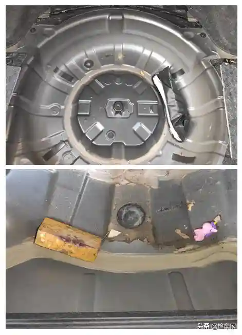后部行李舱备胎坑及后围板无变形修复,漆面自然光滑平顺,边缘密封胶线正常,都还是原厂状态,这就排除了后部严重追尾的情况。