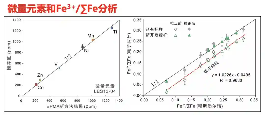 3.同时测定Fe3+/∑Fe比值,分析精度0.04(2σ),优于现有其他矿物铁价态的测试准确度。