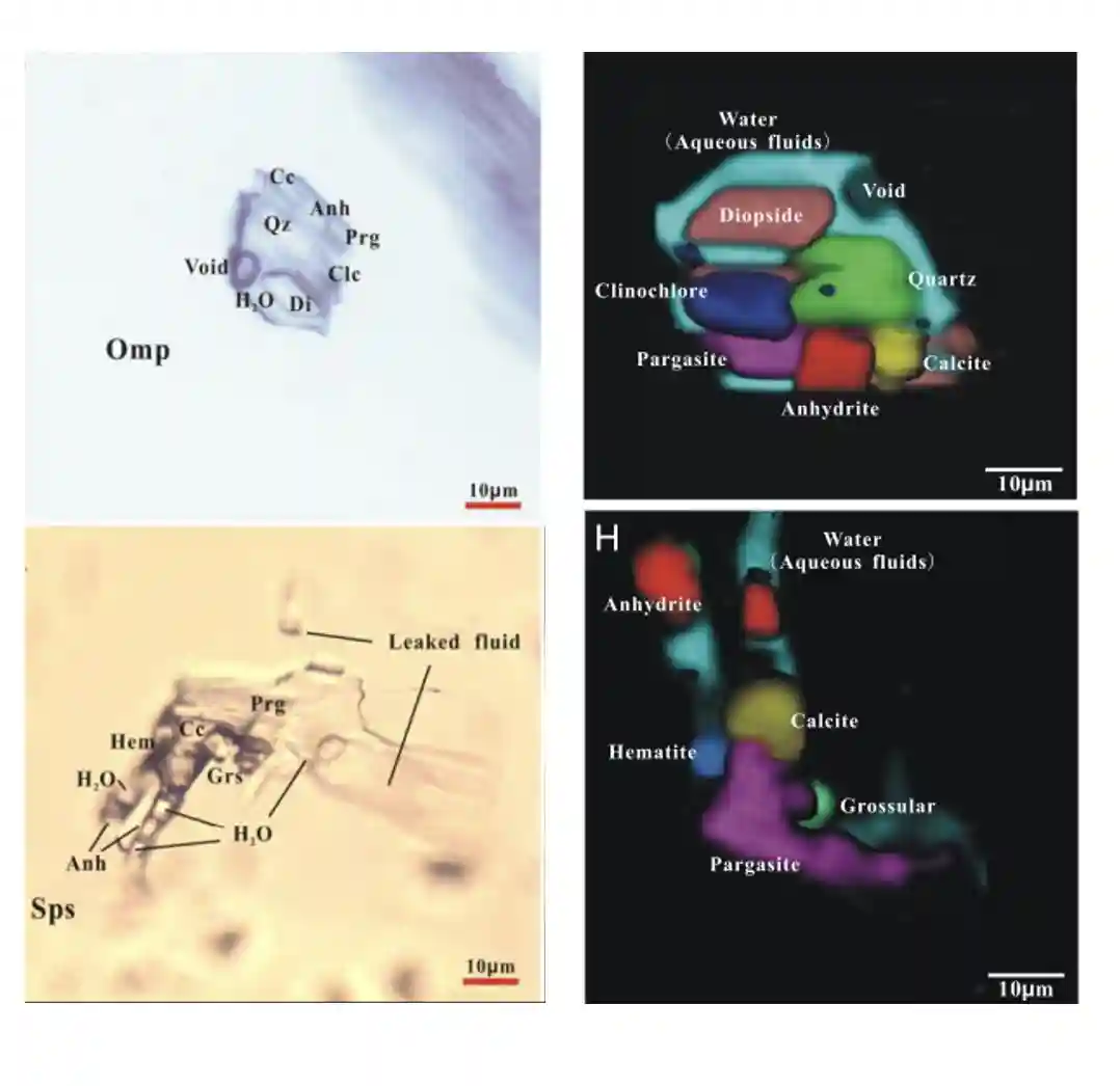 通过对这些包裹体的三维激光拉曼建模和成分定量计算,研究团队恢复了多相流体包裹体所记录的原始成脉流体成分。结果显示,该流体主要包含约22wt.%的SiO2、13wt.%的CaO和41wt.%的水,以及大量的碳和硫等挥发性元素(7wt.%SO3和6wt.%CO2)和其他金属元素。