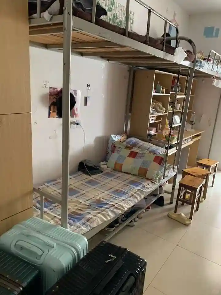 有六人寝和部分四人寝,宿舍里标配90cm*200cm的单人床,新同学们需要自备床单被罩等床上用品。宿舍六人间,上下铺。四人间为上床下桌,海淀的比怀柔空间大很多。