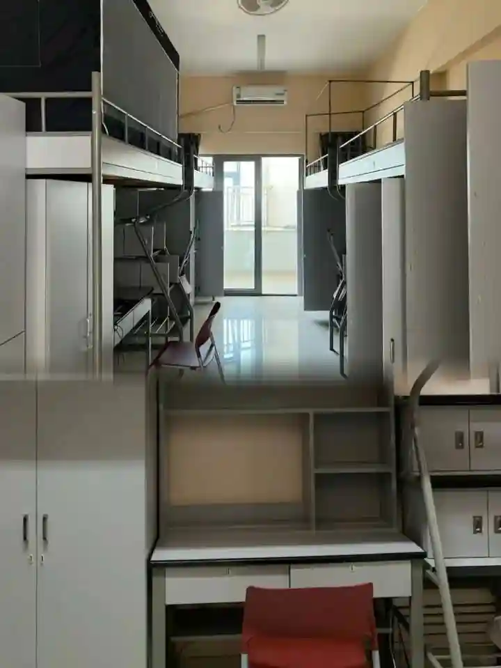 怀柔校区宿舍均为上床下桌,宿舍为4人间,门锁为智能电子锁,需刷卡进入。