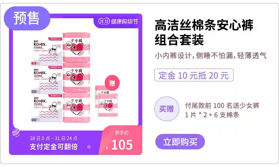 付尾款的前100名还加送普通流量棉条6支*1盒,赠品长这样▼