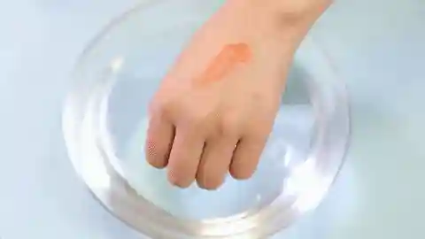 我们试了下这款洗面奶的清洁力,可以清晰看到,手上这一条口红印全都洗干净了哦。
