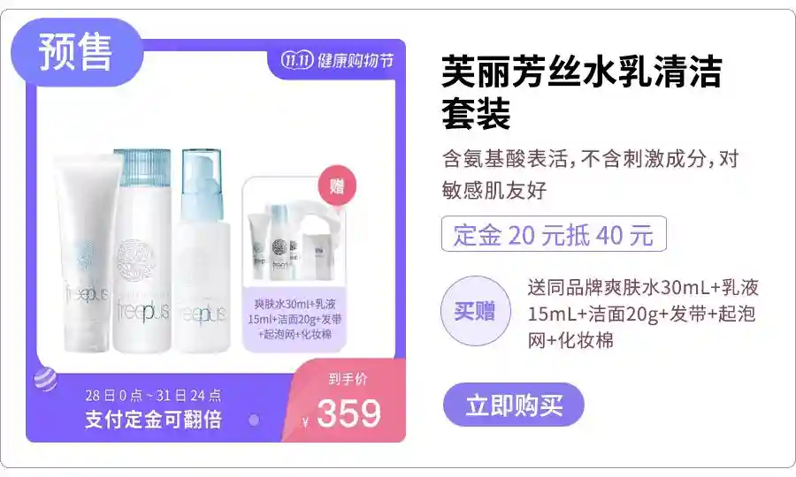 最重要的,这次预售开团价格非常给力,日销价428元的芙丽芳丝清洁水乳套装,限时开团到手价只要359元!