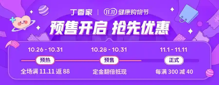 值得注意的是,丁香家11.11活动正式期(11.01—11.11)还有更多好礼和优惠相送: