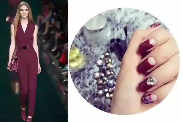 想去美甲,但又不知道适合什么款式时,选择少女粉的极致色——酒红,美艳动人绝对错不了,显得手很白,而且也不会过时。