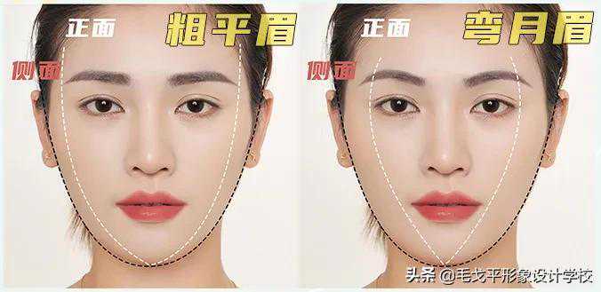如果你不考虑脸型,就把粗平眉照搬照抄画上了,你会发现并不友好……