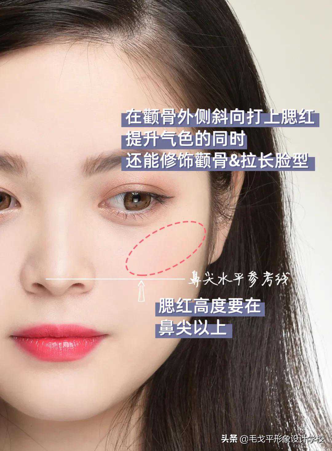 腮红除了能够提升气色以外,还有一个重要的作用就是提拉脸型。