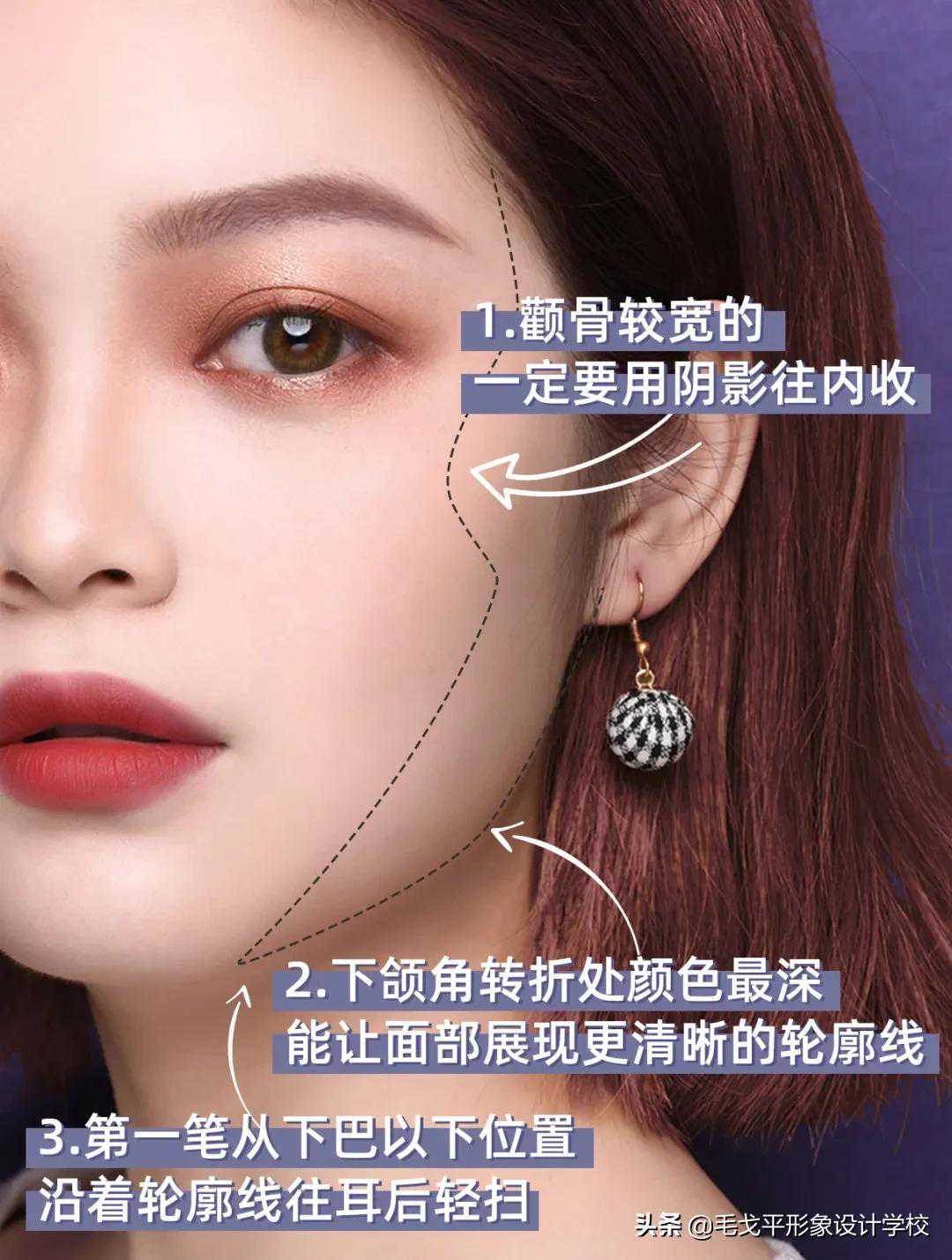 颧骨较宽的,一定要用阴影往内收~