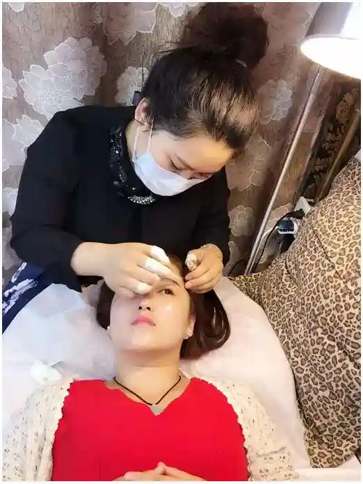 ”其次,使用的色素不同,一般纹绣使用的是可能含有重金属的低价色素,颜色生硬不自然;韩国半永久化妆,使用的是植物性天然颜料,色彩鲜艳丰富,可根据皮肤、头发颜色、个人喜好进行选择和定制。最主要的是使用技术不同,一般纹绣采用的是以人工为主导的创伤性操作,会有结痂,而韩国半永久化妆采用的是FDA认证的极速仪器针上下移动,着色更均匀,无结痂。