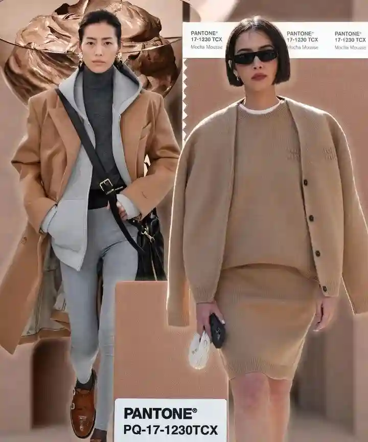 摩卡慕斯(PANTONE17-1230)毫无疑问成为2025年度流行色,潘通色彩研究所的官方说辞是「这是一种令人回味的柔和棕色,它蕴含着可可、巧克力和咖啡的美味,将我们的感官带入它所激发的愉悦和美味之中,同时满足了我们对舒适的渴望」。