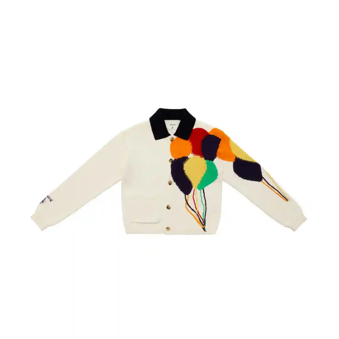 这件经典单品目前已被英国VA博物馆收藏,此次合作款则以一束多彩气球作为点缀,不仅象征两位创始人美学的极致融合,更传递两个品牌顽趣俏皮的风格基因。