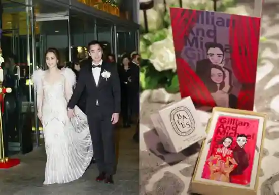 以两人的英文名漫画形象当作伴手礼,也是相当有爱。一袭亮片深V白色婚纱的阿娇仙气十足,与老公赖弘国签手接受媒体的群访,脸上洋溢着幸福的笑容,真的是太美了。
