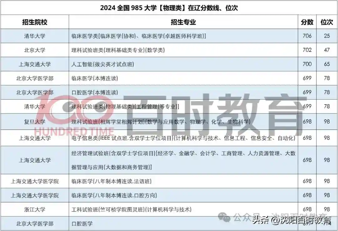 在985大学中,物理类别专业的录取最高分出自清华大学,为706分,其省位次处于第25名;而最低分则是中央民族大学获取,为562分,省位次为第26359名。