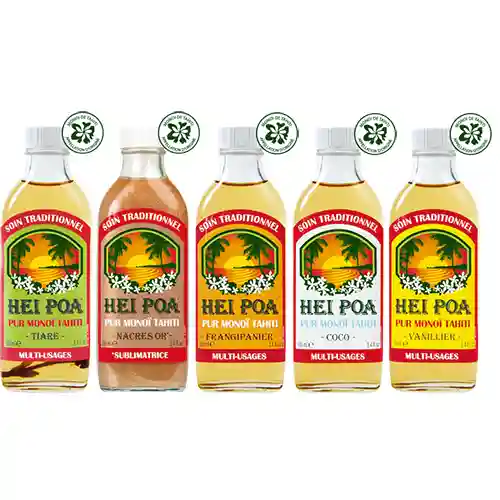 跟上文提到的Polysianes一样,HeiPoa主打的是大溪地的护肤秘密武器大溪地栀子花。HeiPoa更加本土,更加传统,由于油富含了很多的脂肪酸,气温低的时候可能会凝结,这时只消在热水中烫一下,就又可以为头发和身体提供养分了,夏天出门还可以有极好的美黑效果。