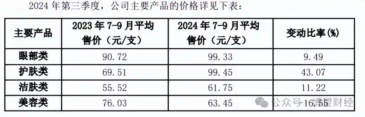 而丸美能交出如此好看的成绩单,首先得益于产品均价上涨和原材料成本的下降。