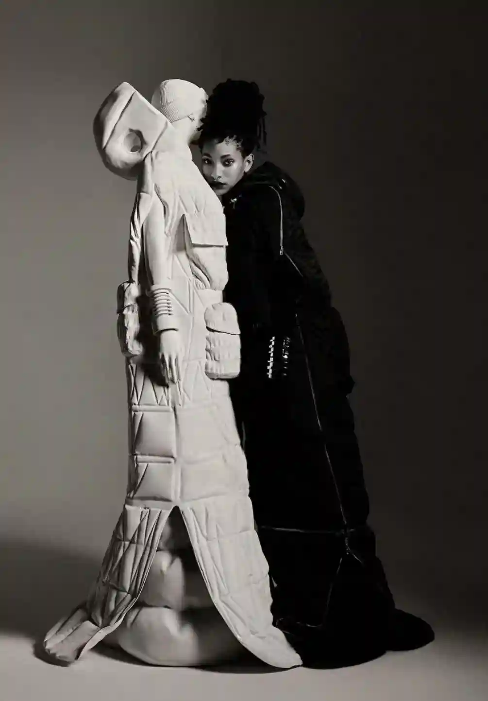 Moncler携手多面艺术家、演员、创作者WillowSmith将户外探险融入都市优雅,合作推出WillowSmith的首个成衣系列。该系列灵感源自山地基因,宽大、坚固的外套搭配合身的裙装,贴身的底层与坚韧的保护性外壳形成鲜明对比,营造出性感的都市盔甲氛围。标志性圆环设计贯穿始终,坚韧面料及雕塑般廓形展现和谐美感,兼备多功能性与时尚性。独家标识和花押字演绎”W”ilow与”M”oncler的共创精髓,探索实用主义与高级时装的平衡边界。