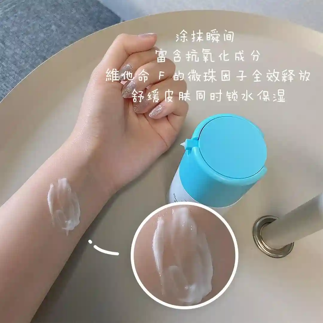 清爽的质地涂抹在肌肤上很水润