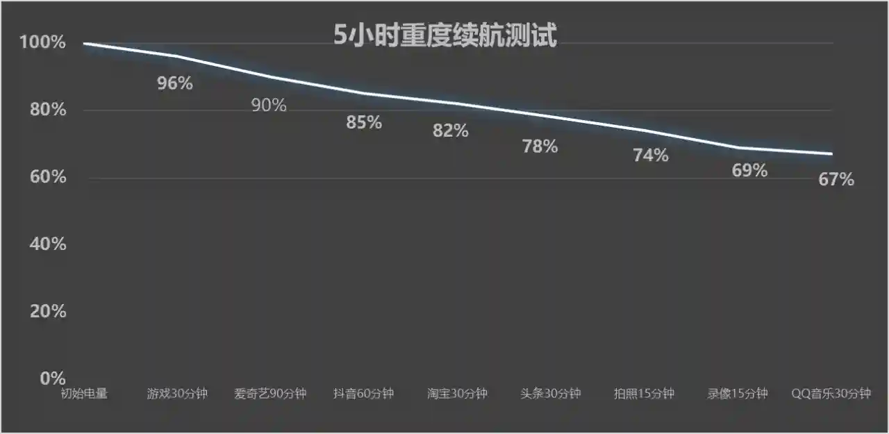 有着这样一颗大电池,iQOONeo10Pro的续航表现足以连续游玩几个小时的大型游戏,我们也对iQOONeo10Pro进行了五小时重度续航测试,从下图可以看到该机在长时间连续测试后还能剩余67%电量,日常使用一天一充也没什么压力。