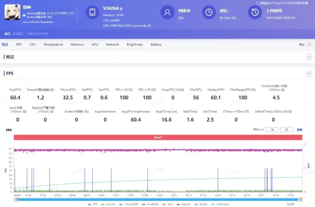 iQOONeo10Pro《原神》极高画质+60帧模式帧率表现