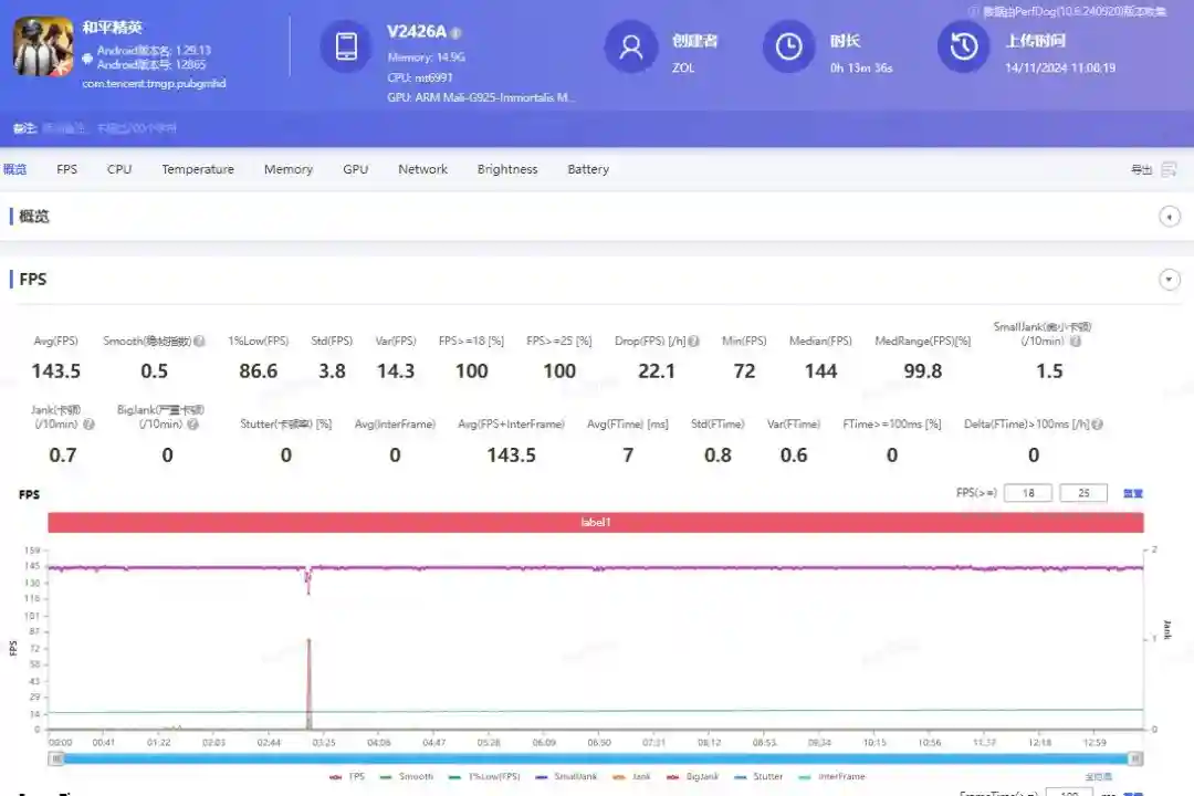 可以看到,iQOONeo10Pro连续游玩30分钟《原神》平均帧率高达60.4,即便是在一些元素爆炸等战斗场景下游戏画面也没有明显卡顿出现,带来大型游戏无限稳帧的画面效果。值得一提的是,测试全程机身背板都没有明显发烫,这要归功于机身内置的6.4K冰穹VC液冷散热系统,超大面积均热板覆盖核心发热源,搭配智能温控策略能做到软硬件协同控温。长时间游戏不烫手。