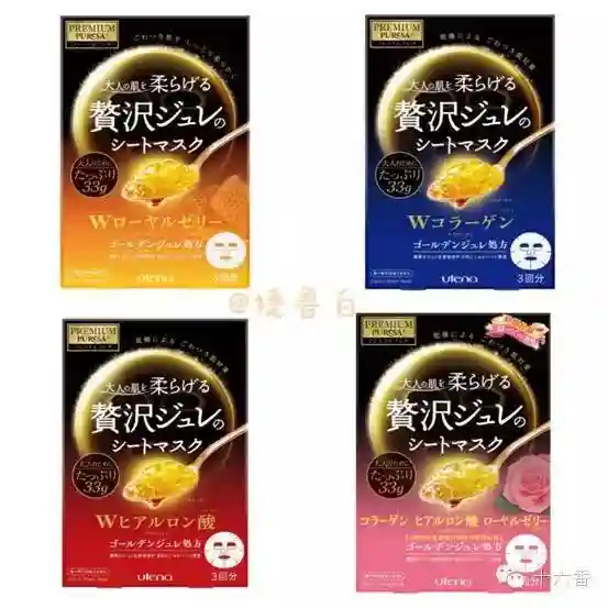 粉色:玻尿酸保湿补水面膜,胶原蛋白,蜂皇浆三合一