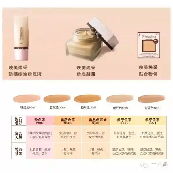 色号选择:BO为黄调,OC为白调,PO为粉调。PO10粉调第一白;OCOO白调第一白;OC10自然白;OC20自然色。