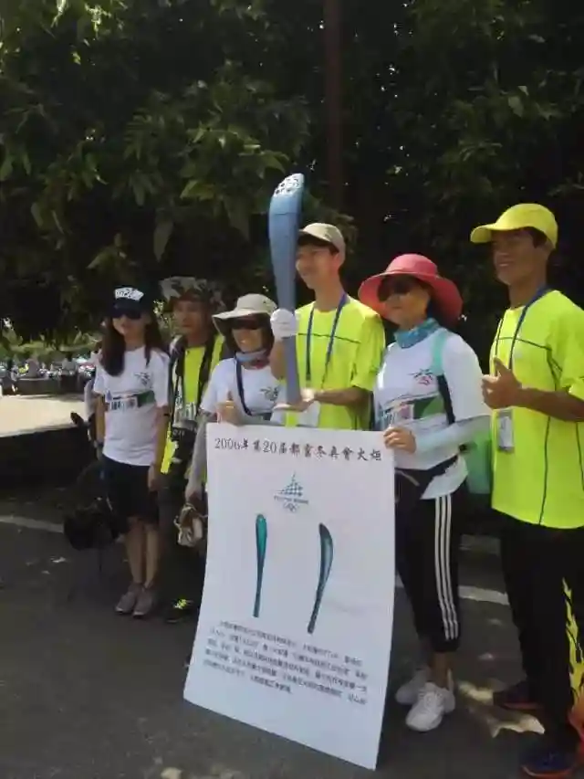 原来在徒步过程中,还有不同的火炬展示,大家争相合影