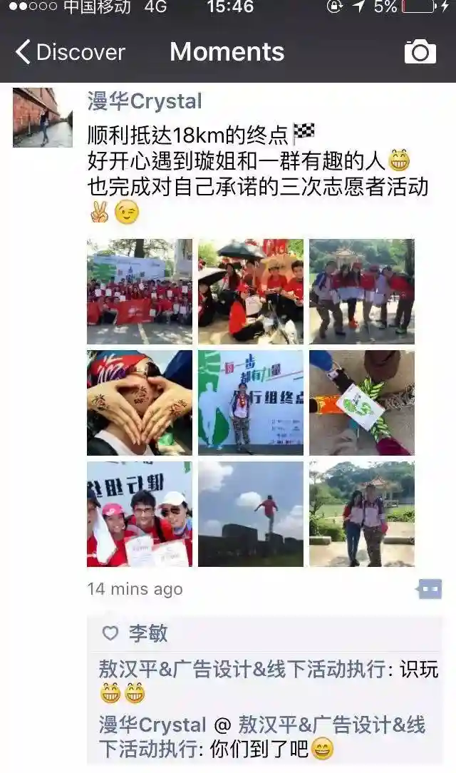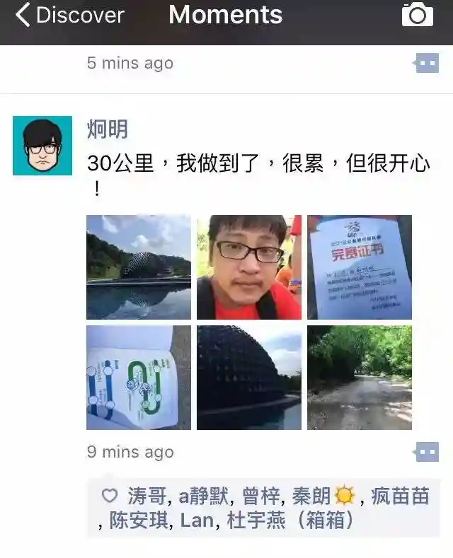 徒步结束后,当然第一时间要发个朋友圈,分享这一路的感慨——